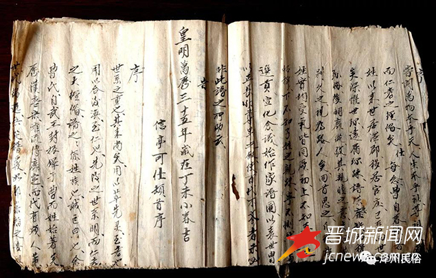 这部珍贵家谱为绵纸质,长约35厘米,宽约25厘米,毛笔手抄线装,总共一本。家谱前后封皮已经破损,四周边沿已经略有磨损,整体上还比较完整。细细翻阅这部家谱后,对它有了一些了解。
