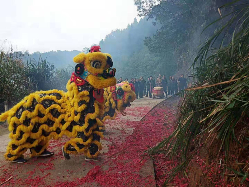 远道而来的广东省始兴宗亲在坟前通过舞动狮头来表达自己的敬仰之心!