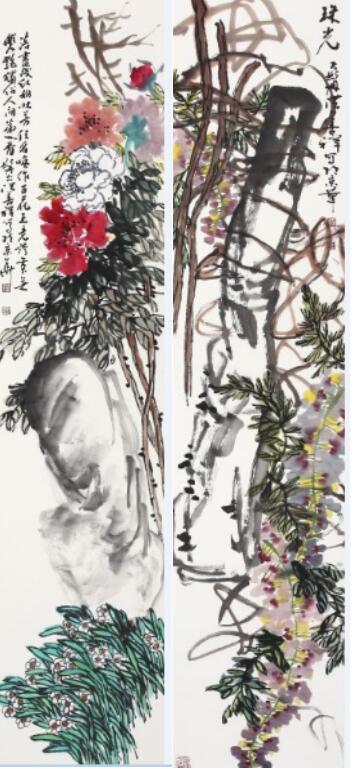 洪善祥的大写意花鸟画与他的书法气息相通,每幅作品都透着金石气息,雄放有力,刚柔圆厚,秀韵天成。