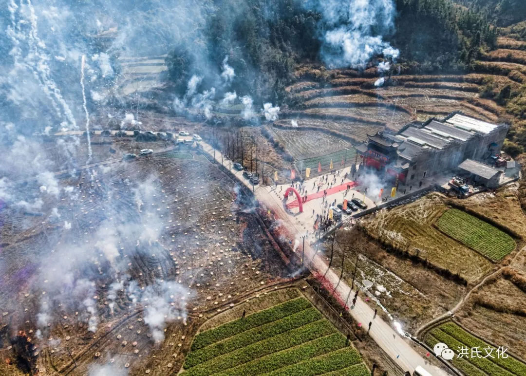 树有根,水有源,宗祠以姓氏为线索,以宗亲为纽带,成为凝聚乡情亲情的神圣典当,洪家源洪氏宗祠落成,各支宗亲,外庄叔侄,姑娘大姐等等纷纷祝贺,他们送来的爆竹烟花摆满了祠堂前的稻田,一声号令“放”,顿时炮仗响彻山谷,轻雾祥瑞吉庆。