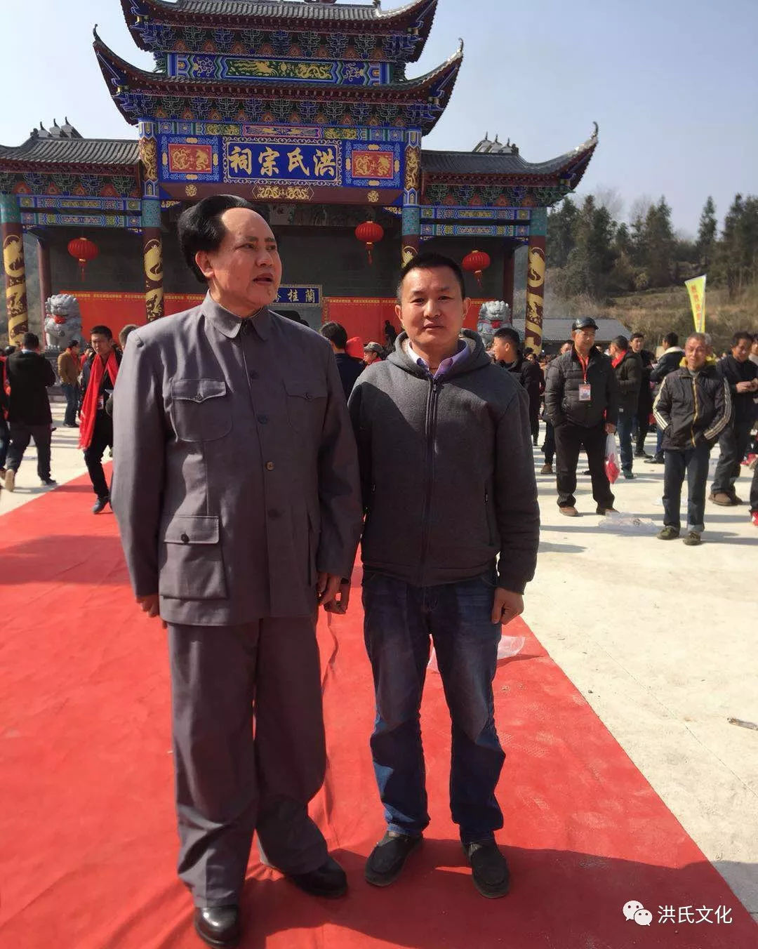 宗祠落成典礼现在也与时俱进,颇有文化氛围,除了常规的鼓乐队,扮演伟人的特型演员也被请到现场,果然现场嘉宾纷纷把握机会与演员合影留念。