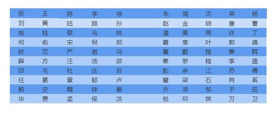 根据这份报告公布的信息,在上海排名前10的巅峰姓氏是——张、王、陈、李、徐、朱、周、沈、吴、杨。
