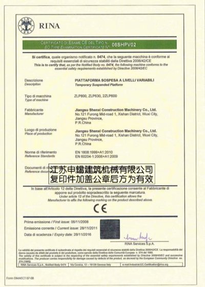 申锡机械有限公司是专业开发和制造建筑机械的高新技术企业。公司创立于1988年,厂区占地面积8万多平方米,建筑面积5万多平方米,总资产逾2亿元。公司具备年产万台套高处作业设备的综合制造能力,始终专注于打造国际高空作业机械优质供应企业。 公司目前的产品主要有ZLP系列高处作业吊篮、电梯安装吊篮、电厂烟囱吊篮、桥梁专用吊篮、船用吊篮、风力发电机配套用吊篮、擦窗机及各类特种非标悬挂作业设备U型平台、L型平台、施工升降机和施工升降平台等。