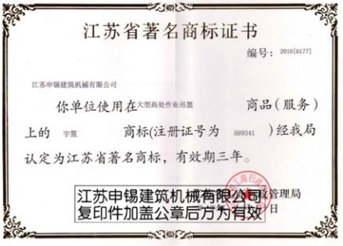申锡公司是中国高空机械与吊篮产业联盟和江苏高空机械吊篮的会长单位,也是吊篮、擦窗机的研发中心、生产基地,同时还是江苏省高新技术企业,担当着行业内的标准制定、检测和培训工作。还承担了国家“十一五”和“十二五”科技支撑计划项目课题、国家科技型中小企业创新基金、火炬计划等诸多国家重点项目的研究工作。并因此分别荣获了2012年“中国城市规划设计研究院CAUPD杯”华夏奖、2017年辽宁省科学技术奖等高质量的专业奖项和荣誉。