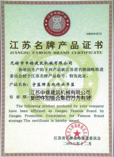申锡机械有限公司是专业开发和制造建筑机械的高新技术企业。公司创立于1988年,厂区占地面积8万多平方米,建筑面积5万多平方米,总资产逾2亿元。公司具备年产万台套高处作业设备的综合制造能力,始终专注于打造国际高空作业机械优质供应企业。 公司目前的产品主要有ZLP系列高处作业吊篮、电梯安装吊篮、电厂烟囱吊篮、桥梁专用吊篮、船用吊篮、风力发电机配套用吊篮、擦窗机及各类特种非标悬挂作业设备U型平台、L型平台、施工升降机和施工升降平台等。