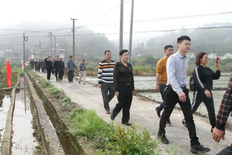 2019年3月21日,春分时节,春暖花开,阳光明媚。梅州市梅县白渡镇嵩山村喜气洋洋,锣鼓喧天。江南吴氏始祖宣公世系九世祖嵩山村开基一世祖念一郎公迁居惠东县等地后裔为感恩祖德,让祖德流芳,发扬中华民族的优良传统,由惠东吴氏宗长帝恩、耀深、培景、贵星、国新、木钦等成员组织江南吴氏始祖宣公世系十五世祖嗣贤公(宝口、新庵、秋长、白石)、嗣椿(增光)、嗣端(松坑)后裔一行36人组成近十辆车队前往梅县白渡镇嵩山村开基一世祖念一郎公墓地,进行扫墓拜祖活动。