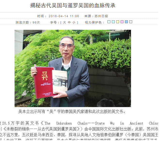 吴本立宗长介绍,吴本立宗长在一开始的时候,写的是英文版的文章。吴本立宗长策划了这本文献,后来发现了泰国宋卡吴氏王国后裔的一大家族,于是请家族后裔前泰国副总理完成后一部分。