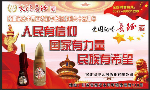他不仅仅是致力于中华优秀传统文化的弘扬与发展,更是商界精英,宿迁美人河酒业有限公司就是由吴梦城先生创建起来的,公司坐落于美丽的中国名酒之乡――江苏洋河镇,企业资质为行业最高等级,现有职工240人,科研技术人员15人,占地面积2.3万平方米,年产美人河系列酒3000吨,产品销往山东,黑龙江,甘肃,内蒙古等地。美人河酒以优质高梁、小麦、大米、大麦和玉米为基诎,采用美人河八百多年的传统酿酒工艺,经科学酿造、精心勾兑而成。具浓香突出,空杯留香,回味悠长的独特风格。美人河酒传承千年文化,酿造历史名酒。
