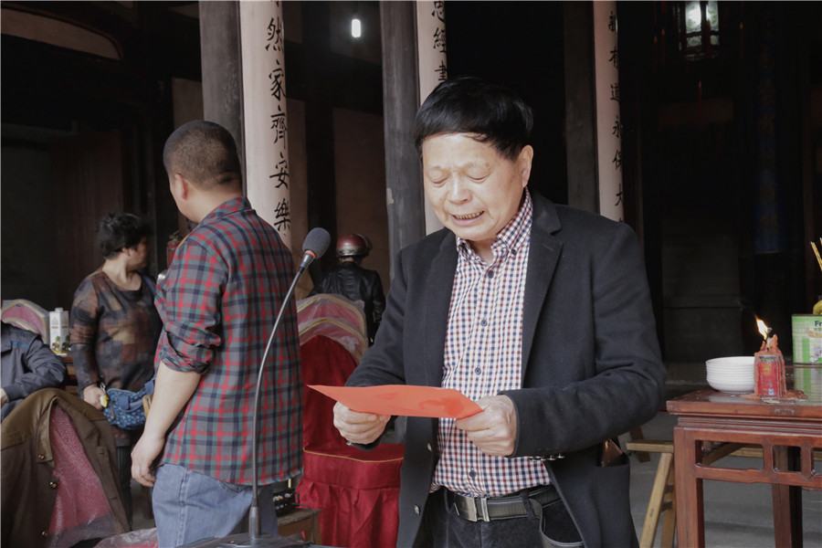 上午11点08分,曹氏宗祠门口礼炮阵阵,鼓乐齐鸣,曹氏后人相继到祠堂里进行献酒献供品、诵读祭文、鞠躬跪拜、上烛进香等仪式,共襄盛典,祝福孙氏子孙繁衍昌炽。