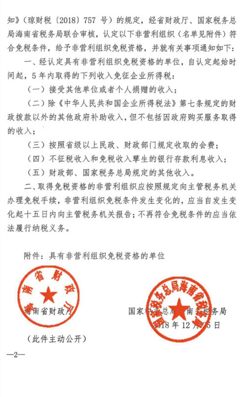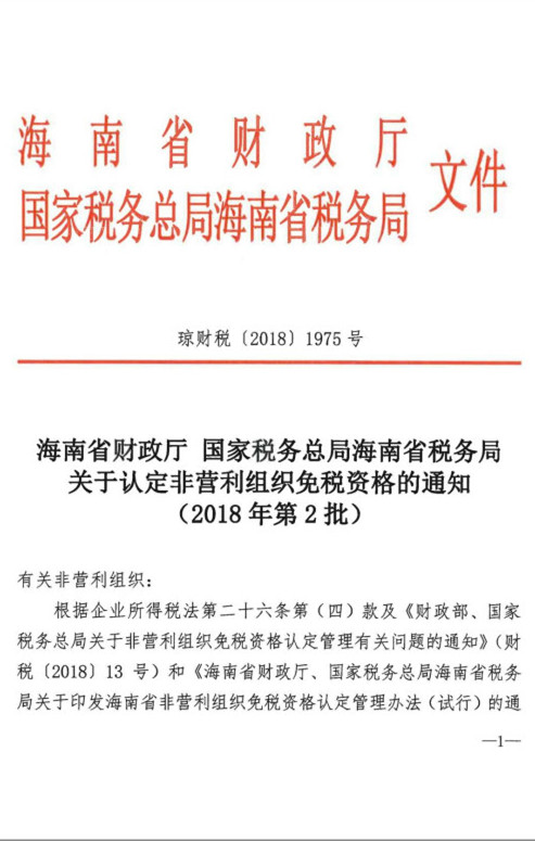 经省政府各职能部门严格审批,海南省吴贤秀文化教育基金会获得海南省财政厅,国家税务总局海南省税务局共同认定的具有非营利组织免税资格单位之一。