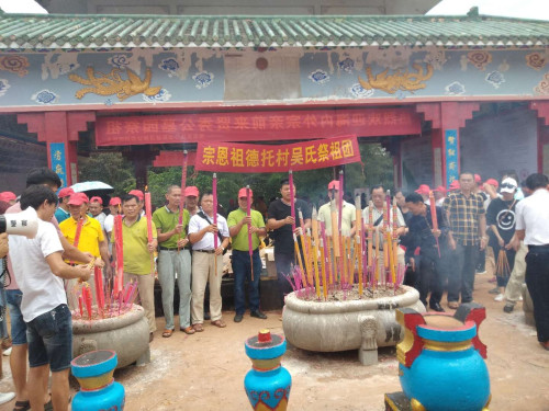 阳春四月,春暖花开。又是一年清明时,为缅怀先祖,纪念渡琼先祖吴贤秀公,激励后代勤奋进取,继承吾祖之美德家风,为此,我们海南省吴贤秀文化教育基金会于4月1日上午八点在海口市美兰区演丰镇龙窝坡吴贤秀公墓祭祖。当天上午,德高望重的吴亚荣名誉理事长,原省政协吴可义宗长,基金会的理事会领导吴川富,吴清东,吴平,吴晓明,吴坤海,秘书长吴开河,社会各界宗亲吴文波,吴馨,吴仁武,吴纯,吴金泽,吴清智,吴宏钦,吴超,吴忠强,吴名居,吴乾虎,吴青锦,吴海彪,吴多柏,吴钟尧,吴坤宏等三十多人,共同祭祖,感恩吾祖。