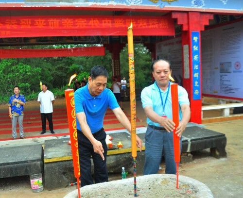 基金会副理事长吴坤海(左)宗长、海南至德文化研究会秘书长吴文波(中)宗长
