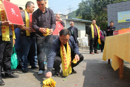 有请族长吴荣文、族委会主任吴秀福、副族长吴维前在祖先牌位灵前上香、燃烛、化纸;