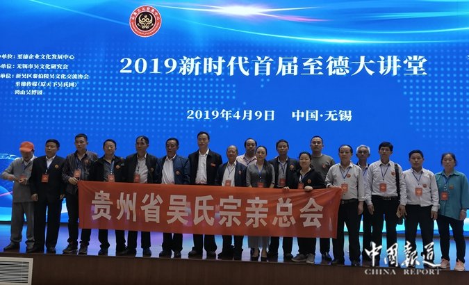 中国报道讯(吴剑波 无锡报道 特约通讯员 吴乾山吴昌国)由民政部至德企业文化发展中心,无锡市吴文化研究会主办、无锡市新吴区泰伯陵吴文化交流协会,至德传媒网(天下吴氏网)协办的 “2019泰伯祭祀暨新时代首届至德企业文化与经济发展大讲堂今日(4月9日)在江苏省无锡市新吴区鸿山物联小镇举办,申锡机械有限公司,赣南吴氏宗亲联谊会,福建省武夷山晋商万里茶叶有限公司,贵州省吴氏宗亲总会会长。贵州省六盘水灵草堂生物科技有限公司,中国泉海集团,浙江省养仲堂生物科技有限公司,湖南省衡阳王矛贸易有限公司,福建省南平市祥寿茶籽科技有限公司,广西省第一湾国际旅游股份有限公司,无锡顺心保洁有限公司,金冠园食品(福建)有限公司,中华吴氏宗亲总会等单位对本次活动给予大力支持。