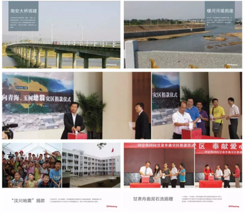 数年来,汉京集团还陆续捐建了南安大桥、螺河河堤、汉京邨等多处基础基建设施,并在汶川、雅安、玉树、舟曲等地突发自然灾害关头第一时间踊跃捐款,支援灾区抢险重建工作。