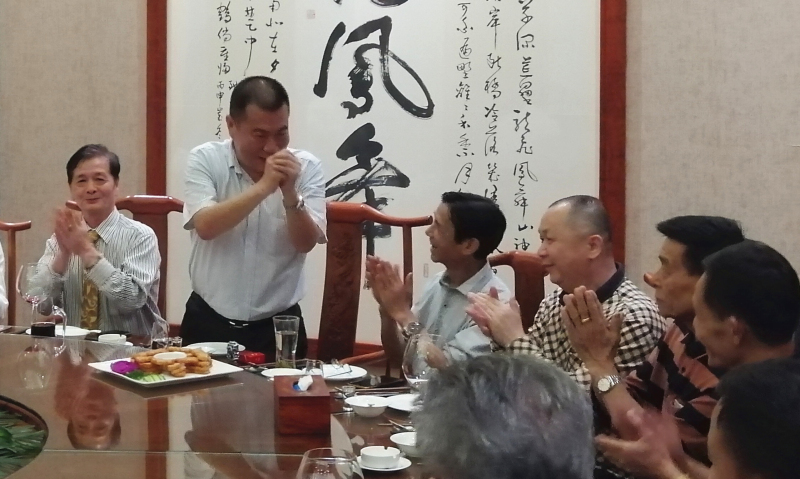由于来自广州、惠州、梅州的宗亲与来自赣州、北京、厦门、广西的宗亲相互不熟悉,在宴会开始前,大家都做了自我介绍,宴会开始后,大家交杯换盏,共叙宗谊,非常高兴能有这个机会相互认识,很多宗亲都相互交换了名片,并加了微信好友。吴长阳宗长在招呼商界朋友宴会的同时,与宗亲们开怀畅饮,和各地宗长交流宗亲事务。宴会中,吴梁莲宽宗嫂、吴羡霞宗嫂、吴尹水晶宗嫂也向每一位来访宗亲敬酒致意。