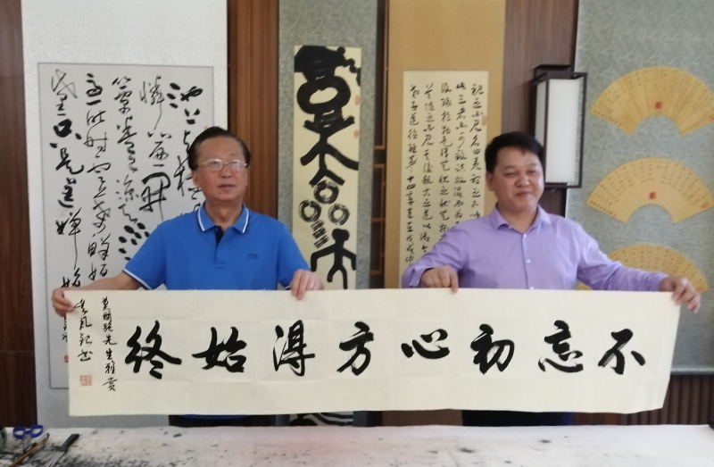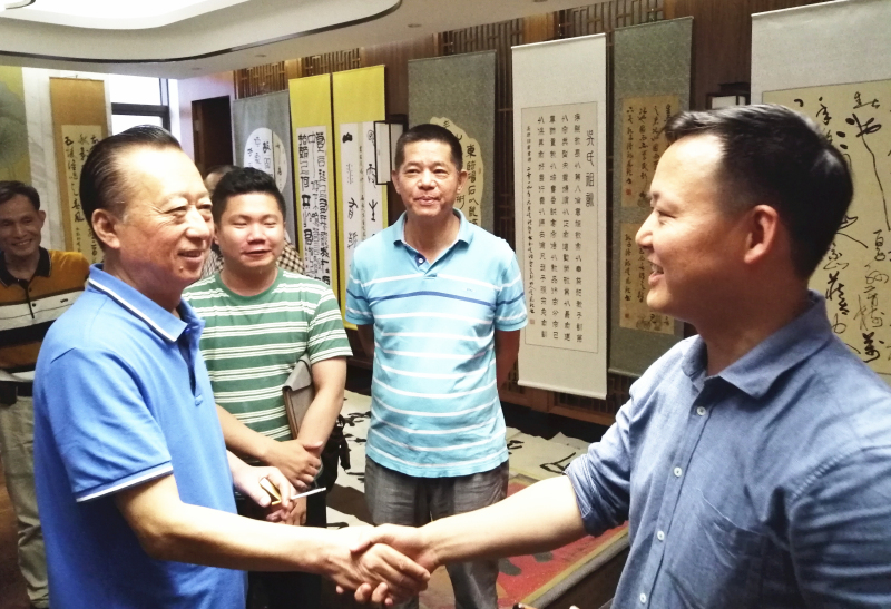傍晚时分,来自北京、赣州和厦门的宗亲乘坐高铁来到深圳,他们是至德企业文化发展中心常务副主任吴锡伟宗长、赣南吴氏宗亲会会长吴强宗长、厦门吴文化研究会副会长吴先辉宗长、吴金武宗长、厦门吴文化研究会青委会主任、蚁族网CEO吴鹏宗长、厦门吴文化研究会会长助理吴上炫宗长,以及他们的朋友莫先生。大约下午五点半钟的时候,这七位宗亲和朋友也来到了海韵大厦吴风银宗长的书法院,参观吴风银宗长的书法作品。深吴会的吴会林宗长也在此时到达海韵大厦,与大家会面。这个时候,吴长阳宗长、吴裕增宗长与商界朋友们的重要会议也结束了,两位宗长赶来与来访的宗亲们会面。