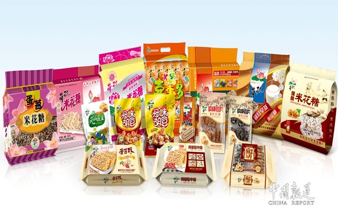 荷花集团求实创新谋发展“江津米花糖”是100多年来江津的一大名片。“荷花牌”米花糖能从众多米花糖厂中脱颖而出,得益于20多年前的一项大胆革新。九十年代以前,江津米花糖用熟猪油作配料,保质期只有3个月,遇上连续高温,保质期仅为15天。这成为米花糖外销的一大瓶颈。公司董事长吴永富清楚地意识到只有提高产品品质,延长保质期,才能破解江津米花糖流通和销售的“瓶颈”。经过多次试验,吴永富用进口棕榈油替代猪油,提高了米花糖的卫生指标和理化指标,延长了保质期到10个月以上,行业的工业化、规模化生产成为可能。整个江津米花糖行业自此开始迈入大发展时期。同时,率先在行业内采用铝复包装,进一步延长了保质期,提高了卫生安全指标和米花糖的档次;率先使用枕式包装机,推出小块米花糖,引导市场生产、消费新潮流;开创业界新技术、新品种之先河。公司确立了产品规格多样化、风味化、包装礼品化的发展路子,产品不断开发创新,荷花牌米花糖也摆脱了原先单一的甜口味,研发了椒盐味、麻辣味、银耳早茶等多种口味,率先推出巧克力米花糖、蛋苕酥、珍珠麻片,还开发出怪味胡豆、芝麻杆、蛋卷等系列品种,极大地丰富了市场,较好地满足了不同消费者的需求。公司十分注重工艺革新,“米花糖酥米工序煤炭灶改自动化油炸生产线”的技改项目,改用电和柴油作能源,彻底杜绝了烧煤带来的环境污染,该项目在重庆市职工节能减排劳动竞赛中获“十佳创新成果”奖。与机械制造商通力合作,成功设计、调试、改进米花糖切割机,大大降低了工人的劳动强度,缩短了劳动时间,降低了产品成本,提高了食品安全卫生和生产效率。