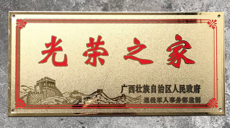 看到这块牌匾的瞬间心里感到暖暖的。我虽然退出现役已经57年了,但政府和人民并没有忘记我这个默默无闻的退役军人。这块《光荣之家》的牌匾是广西壮族自治区人民政府颁发的,由退役军人事务部监制。这小小的一块铜制牌匾蕴含着很深的政治意义和历史意义。说明国家对退役军人很重视,肯定他们服役期间所做出的无私奉献,同时也彰显出军人的尊严和极强的保家卫国的责任感和荣誉感。
