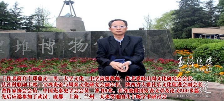 【作者简介】郑鼎文,大学文化,中学高级教师(副教授),中国先秦史学会会员,周公思想文化研究会常务理事,陕西省大雅礼乐文化促进会副会长,宝鸡炎帝与周秦文化研究会副会长,岐山周文化研究会会长,县社科联副主席,县政协文史研究员,省作家协会会员,曾任范家营高中校长和县老年大学首任校长,著有《周文化丛书》“三王卷”“典故卷”、《周公演义》《品味周公庙》等9本书,在报刊发表文章500多篇。先后应邀参加了武汉、成都、兰州、上海、宝鸡、西安、天水等地的30多场学术研讨会。