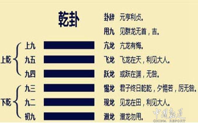另一种说法认为“九五”一词源于《易经》。据说《易经》为周文王所演,因此也称为《周易》。《周易》64卦的首卦为乾卦,乾者象征天,因此也就成了代表帝王的卦象。乾卦由6条阳爻组成,是极阳、极盛之相。6个阳爻,从下向上数就是:初九、九二、九三、九四、九五、上九。其中第五爻称为九五。九代表此爻为阳爻,五为第五爻之意。九五是乾卦中最好的爻,乾卦是64卦的第一卦,因此九五也就是64卦384爻的第一爻了,就成了帝王之相。在此有人会问:为什么放着比“九五”还要高的“上九”不用,皇帝却只占定“九五”呢?这是因为“上九”的位置就是“亢龙”,过犹不及,结果只能是“亢龙有悔”。这往往就意味着倾、覆、亡、失、败、退等不吉利的走向,因而中国古代皇帝就乐意呆在“九五”的位置上了。同时,从出处来看,《易经*乾卦第一》的卦辞有:“九五,飞龙在天,利见大人”、“飞龙在天,上治也”、“飞龙在天,乃位乎天德”,这些卦辞,显然都是祥瑞之兆。