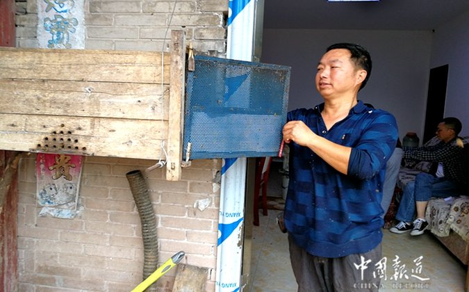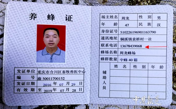 中国报道讯(吴蜀丰)若果你想买到正宗的蜂蜜,你可以开车去重庆合川区铜溪镇袁桥村1社周龙养蜂场,在这里,你将亲自见证养蜂专家周龙从蜂箱里取下来,当场手工将蜂蜜压榨岀来然后用罐接下蜜蜂液。