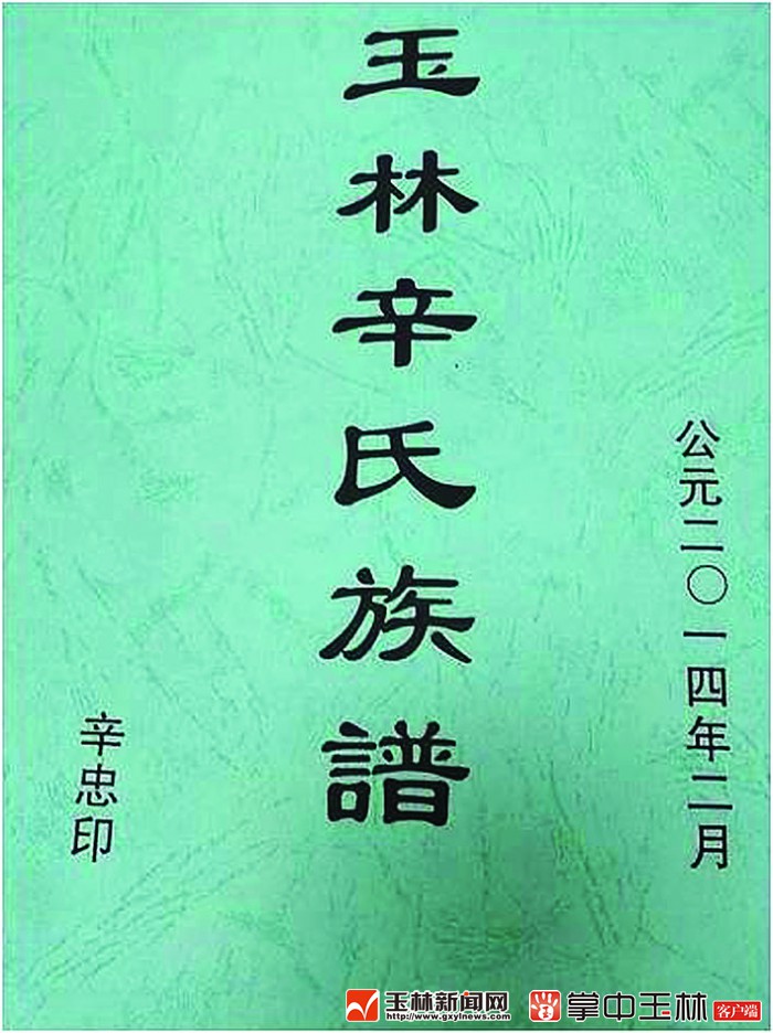 《玉林辛氏族谱》自玉林来祖大成公下25代,2000年编撰。