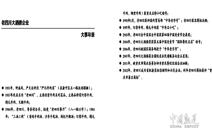 据“老四川”金岛花园耍坝店负责人岳郎介绍,老四川大酒楼创办于20世纪30年代初,目前是重庆市仅有的两家由国家命名为“中华老字号”的餐饮企业之一。