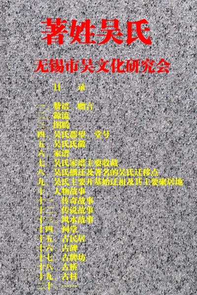 天下吴氏网讯(吴乐一)为传承吴文化,弘扬至德精神!经无锡市吴文化研究会研究决定编纂《著姓吴氏》上下册(暂定名),此书将各地吴氏家族方方面面的资料汇集成册后由出版社出版,该书内容丰富,图文并茂,是吴家人查找吴氏资料的通用宝典。为了保证编书资料的完整性和真实性,现面向吴氏家族宗亲免费征集有关资料,望各位支持。凡提供资料单位及个人,文章中均注明作者单位姓名,届时将获得免费赠送上下册一套。征稿时间截至7月30日止。