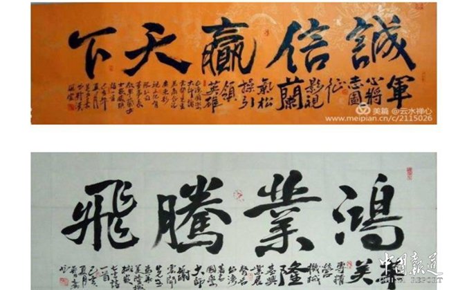 日前在广州番禺长隆国际大酒店举行的澳洲亚太区运营中心,开业庆典暨启动仪式上,为举办方写了"以人为本,以众为链"和"百善孝为先"搬上了舞台!舞台上的潇洒,日趋成熟!他的悬腕书法技艺娴熟,技压群芳,也深深得到各商演企事业老板,和舞台广大观众书法爱好者的喜爱和赞美!