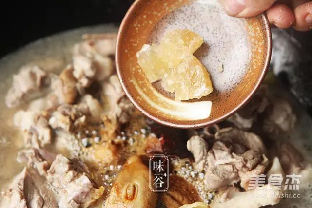 8.放入冰糖,蒜苗。