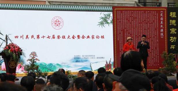 同日还举办了企业家论坛会议。中国策划学院、四川华人行农业旅游开发公司、四川华人行影视文化公司、深圳阳明荣实业有有限公司等三十余家企业单位代表以及四川省内外各地吴氏宗亲、吴氏宗亲相关优秀企业家代表参加了会议。在企业家发言中,吴开明说到:斯人已乘黄鹤去,辉煌前程待后人,今天站在这里的我们吴氏后人,当弘扬先祖美德,积极促进和加深宗族联谊,念血脉相通之情,思同宗共祖之谊。我辈当以国家利益为重,报效祖国,报效社会。不分南北,不分支系,明礼诚信,精诚团结,互通有无,族亲融合,互帮互助,共谋发展,这是我们今天站在先祖前,祭奠先祖的又一更重要的意义。