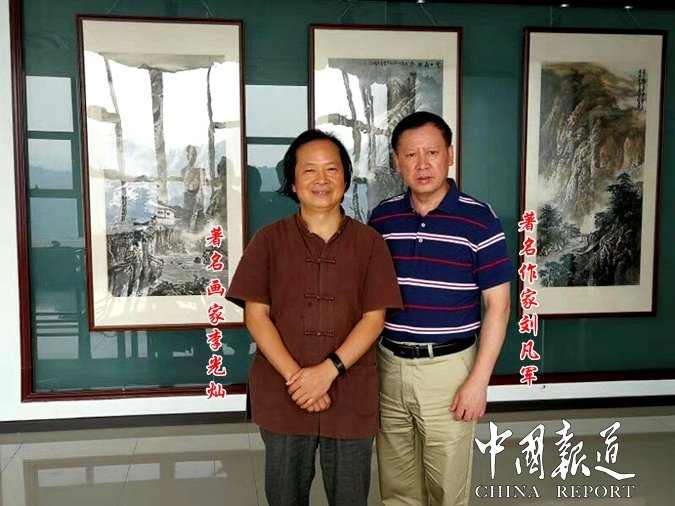 中国美术出版总社董事长兼总经理,人民美术出版社主编、中国美术家协会中国画艺委会委员、著名山水画家程大利先生。展开画卷,一段一段地兴致勃勃地看下去,不断频频点头,露出赞许的表情,嘴里喃喃地说:“好哇,好哇。”看完后程先生郑重其事地表态:“光灿,您的画真好,把原作拿到北京来展览,最好在中国美术馆!”