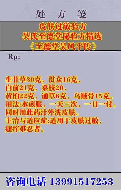 皮肤过敏验方吴氏至德堂秘验方精选