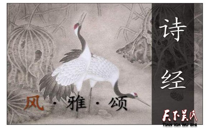 《诗经》就整体而言,是周王朝由盛而衰五百年间中国社会生活面貌的形象反映,其中有先祖创业的颂歌,祭祀神鬼的乐章;也有贵族之间的宴饮交往,劳逸不均的怨愤;更有反映劳动、打猎、以及大量恋爱、婚姻、社会习俗方面的动人篇章。《诗经》现存305篇(此外有目无诗的6篇,共311篇),分为《风》、《雅》、《颂》三部分。