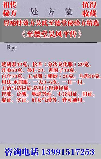 主治与适应症:适用于胃神经痛,胃胀,泛酸,呃逆等症,不分阴证,阳证,虚证,实证,妇女气滞等,皆可通用。