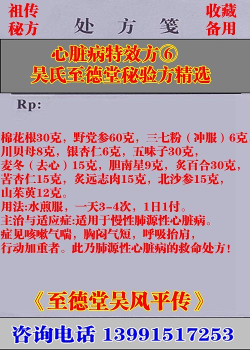 心脏病特效方⑥吴氏至德堂秘验方精选