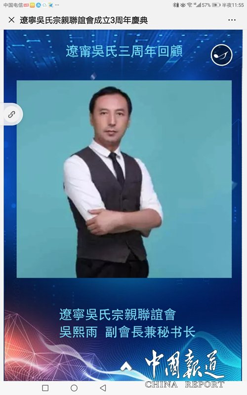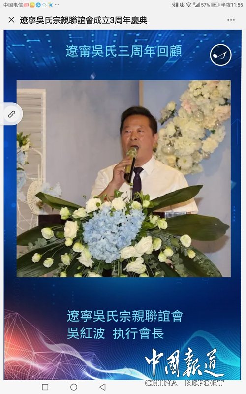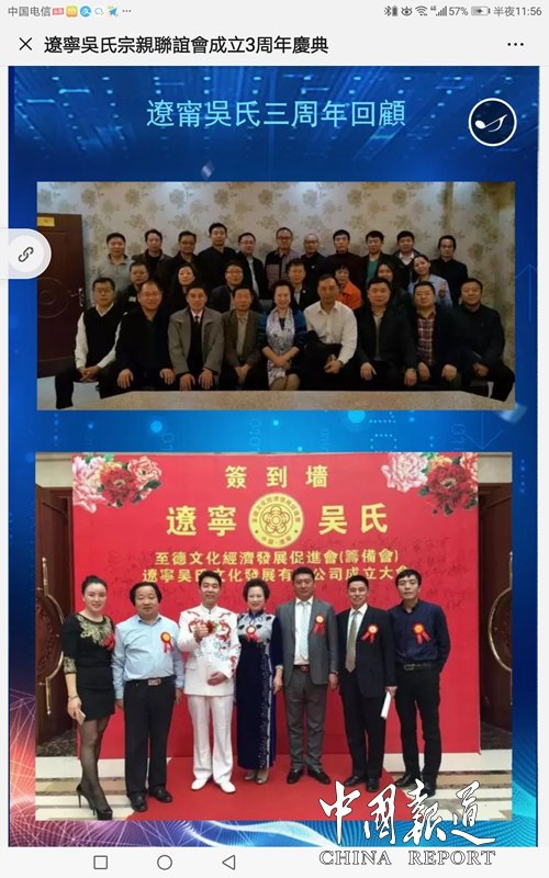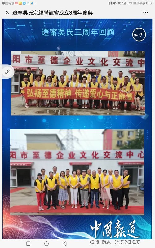 另悉,2019辽宁吴氏宗亲联谊会,辽宁吴氏文化发展有限公司成立三周年将于2019年9月9日在沈阳市迎宾馆如期举行。据介绍,届时将会有50名海外宗亲代表、国内各地宗亲代表50人及辽沈吴氏宗亲近200人出席盛典。