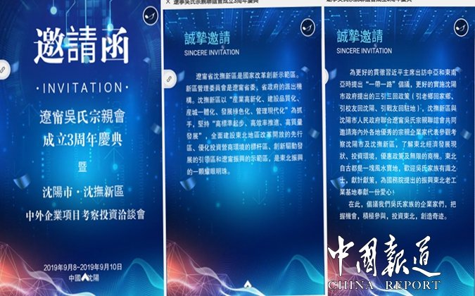 中国报道讯(吴蜀丰报道)为更好地宣传辽沈,推动辽沈地区经济发展,助力招商引资,辽宁吴氏宗亲联谊会、辽宁吴氏文化发展有限公司联合海内外知名吴氏企业家及相关组织,与沈阳市人民政府、沈抚新区管委会共同组织“沈阳市及辽宁省沈抚新区中外企业家项目对接会”将于2019年9月9日在沈阳举行。