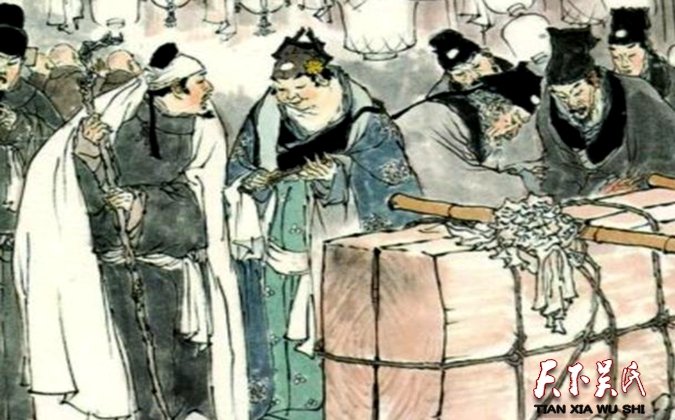 (8)出殡(一)。出殡的前一天上午迎坟,孝子贤孙怀抱遗像,在吹手唢呐声中,先去老祖坟烧香表,将先祖迎回家中,接受下午到傍晚举行的祭奠。晌午刚过开始迎亲,顺序是,老舅家,娘家,外甥,老岳丈家,接着是长女,亲戚依次进行。长女的献祭是要放在灵前祭奠。迎客的过程是,抬上奠桌,上放香表、酒盅,怀抱遗像,手举蟠幛纸,孝子贤孙手执香火,在村口接客。来客向遗像磕头作揖,跪燃黄表、祭酒,孝子贤孙跪地磕头还礼,吹手哨呐紧随其后。