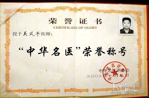 【个人荣誉】国家卫生部授予“中华名医”荣誉称号。联合国国际医科大学、世界自然医学基金会、世界自然医学组织联合授予“人类医药大师”;“世界千年名医”“世界好医师”“杰出贡献奖”。中国企业文化促进会、中国社科院、清华大学、中国国际职业经理人协会联合授予“中国优秀医疗科技工作者”。中国医疗保健国际交流促进会授予“杰出贡献奖”。特邀出席中国名医第四届论坛大会,受到中央领导和国家卫生部领导的表扬和接见;吴风平创办并领导的“安康传统医学研究所”因在科研上取得重大成果,而被评审授予“三星级单位”及“中国优秀职业经理人”称号。中国民营经济研究会、中国最具发展潜力企业高层论坛组织委员会授予“中国最具发展潜力企业”和“中国最具发展潜力企业领军人物”称号。中华中医药学会授予“全国基层优秀中医”光荣称号。吴风平先生的个人事迹被录入《世界名医大典》、《中国中医名人榜》、《中国优秀特色专科名医荟萃》、《中华各界建设先锋人物》《世纪风采人物》等大型权威辞书。