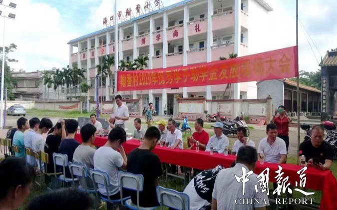 中国报道讯(特约采编吴乾山),8月23日上午,海南省海口市龙华区龙泉镇翰香村,举行“奖助”学金发放现场会。用5万多元资金对本村24名今年高考大学生进行资助发放奖励。