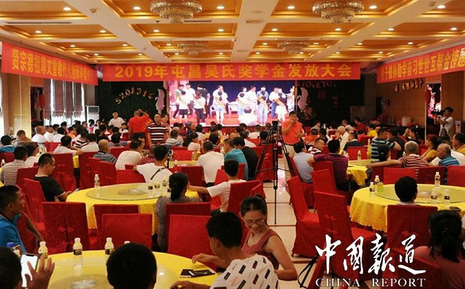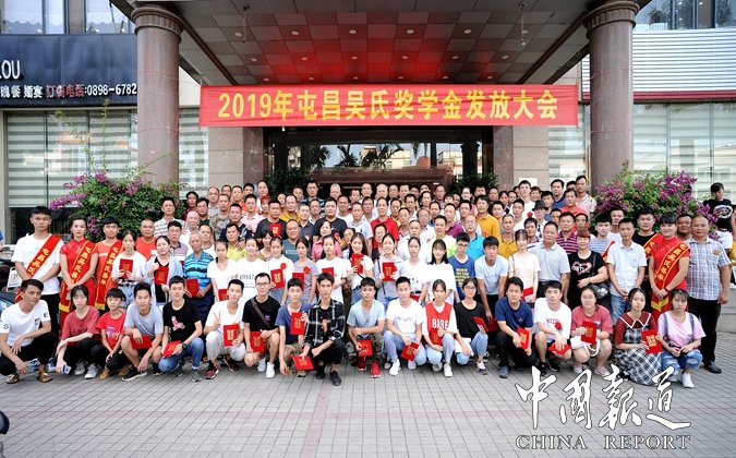 中国报道讯(特约采编吴乾山),2019年8月25日下午,海南屯昌吴氏基金会举行“奖助学”金颁发大会。为弘扬“崇文兴教,尚德育贤”的良好风尚,以奖学来激励更多的吴氏优秀学子,勤奋学习,敦亲睦族。让他们成为,“勤学,爱家,兴邦,和族”的国家栋梁。屯昌吴氏公会、屯昌吴氏基金会,对今年考上大学的优秀学子46名,其中1名研究生,A批27名,B批19名,发放资金7万元,予以荣誉证书和奖励金。