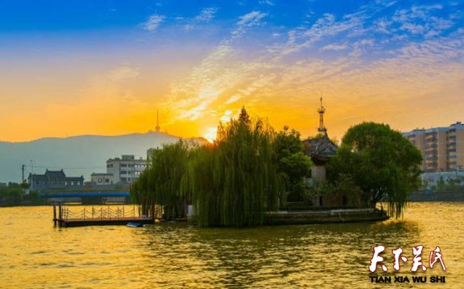 芙蓉湖古称“上湖”、“射贵湖”,入无锡地称“无锡湖”,在江阴境内又称“三山湖”,在江苏武进县东、无锡县西北、江阴县南。虞翻、郦道元皆以此列之五湖。北宋前这里湖面广袤、碧浪滔天、南北相望百余里,东西更港浜无数,绵延不绝,在当时江南是仅次与太湖的一片水域,面积达“一万五千三百顷”。唐代陆羽曾这样描写道:“惠山东北九里有上湖,南挖长洲,东峒江阴,北掩晋陵,苍苍渺渺,迫于轩卢”“为江南烟火伟观”后因湖中荷花生长异常茂盛,随改名芙蓉湖(湖形酷似芙蓉花而得名的说法)。