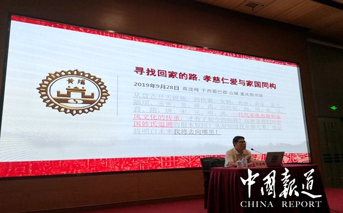 中国报道讯(吴蜀丰报道)9月28日,一个很特别的日子。这一天,是重庆图书馆国庆70周年放假之前,九月份最后一堂面对社会的开放式公益讲座,也是中华民族历史上一位令人尊崇的人物,儒家学派创始人至圣先师孔子诞辰2570周年的生日。作为直辖市文化宣传系统高地的重庆图书馆在百忙之中作了一个特别策划,邀请姓氏文化研究学者蒋泷峰先生作为此次重庆图书馆讲座特邀嘉宾,作题为《寻找回家的路.孝慈仁爱与家国同构》专场演讲。早在今年年初,重庆图书馆公益讲座负责人陈昱竹女士就与蒋泷峰先生多次沟通,选定讲座题目,确定本次讲座的主题及内容。数周以前,又一再叮嘱,尽职尽责。