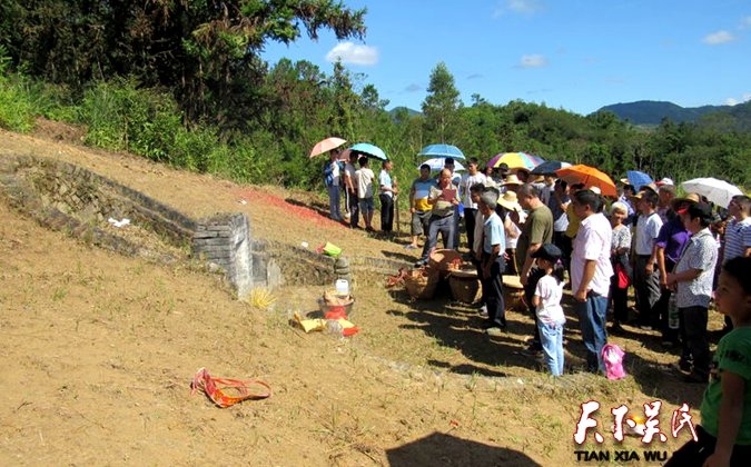 第3路由吴俊生带队,拜祭两个祖墓,①永祥始祖墓(平花下塘冲田面垠);→②王克岭守穆公墓。平花吴氏祭祖筹委会为方便一些年纪大、不开车回来在市区住宿的外地宗亲祭祖,每年都包了两台大巴车在早上六点免费搭载在信宜市区居住的宗亲到平花吴氏宗祠祭祖,祭祖结束又搭他们回到市区。同时请酒家厨师做祭祖午餐,解决他们祭祖用餐问题。