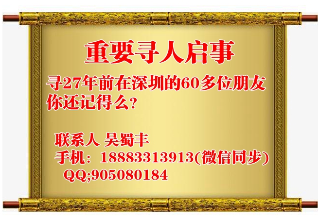 寻27年前在深圳的60多位朋友 你还记得么?