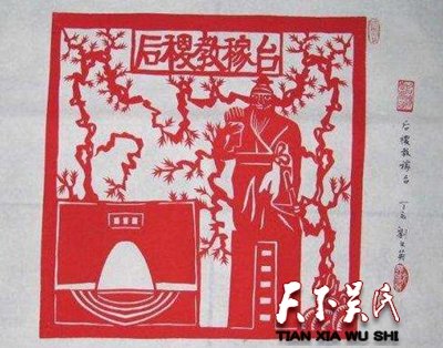 【后稷教稼】周人始祖后稷,名弃。其母是有邰氏之女姜嫄。姜嫄在野外发现巨人足迹,心里欣欣然,便用脚践踏,结果身子震动好似怀孕一般。后来生下儿子。姜嫄认为不吉利,将儿子抛弃在小巷,好奇怪,路过牛马都避开不踏;又想把儿子放在树林中,正巧碰上那里伐木人太多,就抱着儿子走开;接着放在结了冰的河里,想不到众多鸟儿纷纷飞来,争着用羽翼为儿子铺盖、保暖。
