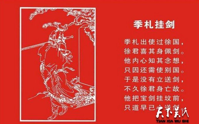 我们不但要学习季札的三让,更要学习季札热情四溢的才华与威仪的积极情怀和热情,季札周游列国,展示了过人的才华与洞察力。这是一种威仪的展示,一种展示吴国深厚的文化底蕴,一种展示吴国国力的强大。古人说,威仪三千,礼仪八百,威仪比礼仪重要得多,所以季札非常认同与肯定威仪的重要性,所以季札藐视其自身配剑的价值千金之财,看见徐君爱不释手,暗自许诺要送给徐君,但仍然坚持要在完成威仪于列国之任务之后,仍把千金之剑送给徐君,虽然这时徐君已经去世,但为了完成心中之许诺,仍然把剑挂徐墓之前,以示季札对自己心中之意志与欲望以及初衷的炽烈坚持,这就是一诺千金,诚信至本的精神。