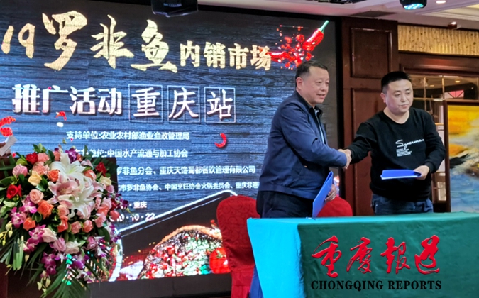 2018年我国共养殖150多万吨罗非鱼,主要集中在广东、海南、广西三省,但受中美贸易摩擦影响,作为罗非鱼最大消费市场的美国市场出口严重受阻。与此同时,罗非鱼内销市场的开拓亦面临来自国外同类产品(如越南巴沙鱼等)的激烈竞争。为让老百姓能认识、认可这条中国产的高品质鱼,让罗非鱼产品走上重庆消费者的餐桌,中国水产流通与加工协会罗非鱼分会和重庆市餐饮俱乐部决定强强联合,共同携手,结成深度的战略合作伙伴关系,双方代表在与会人员的共同见证下签订了战略合作协议,为双方会员未来在餐饮行业方面的交流合作奠定了坚实的基础。